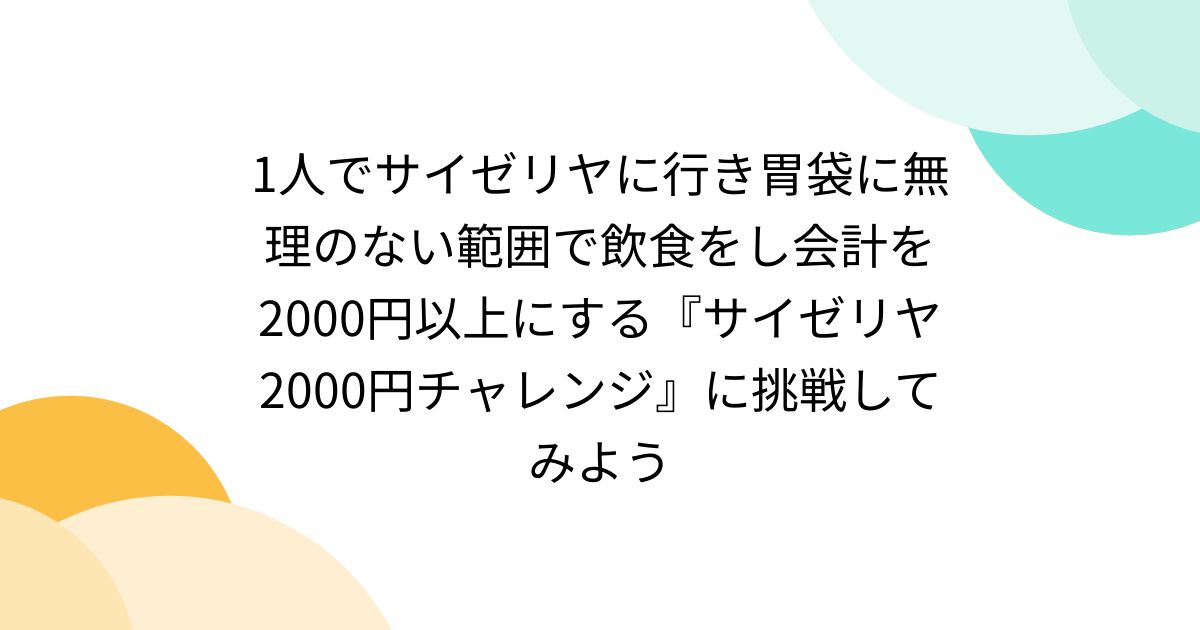 1人でサイゼリヤに行き胃袋に無理のない範囲で飲食をし会計を2000円以上にする『サイゼリヤ2000円チャレンジ』に挑戦してみよう